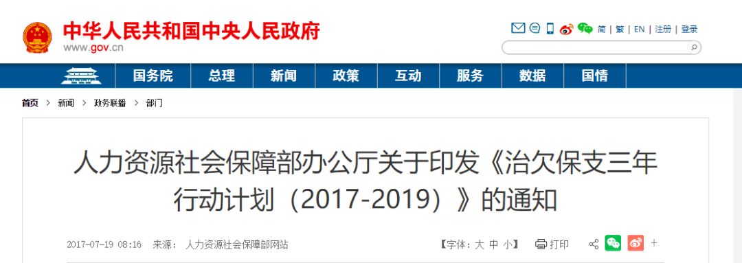 治欠保支三年行动计划(2017-2019)