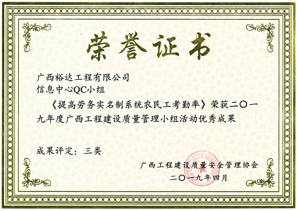 2019年度广西工程建设质量管理小组活动优秀成果