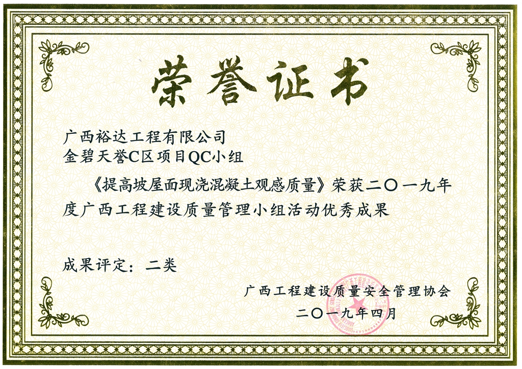 2019年度广西工程建设质量管理小组活动优秀成果